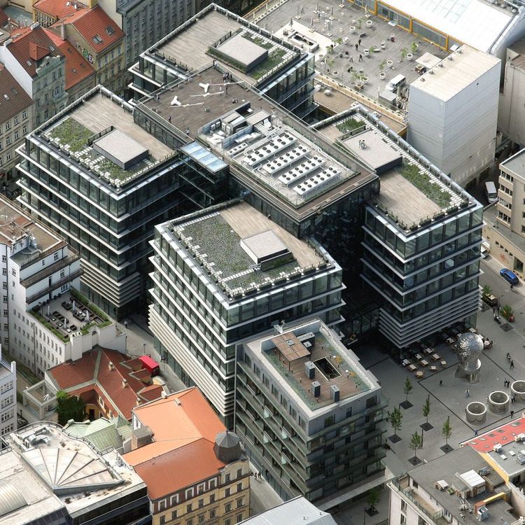 This structure with 8 above-ground floors and 4 basement levels contains a business gallery, office space and a detached house with 13 luxury apartments, 250 underground parking spaces. The shopping gallery is directly connected with the concourse of the Národní Třída metro station, line B.